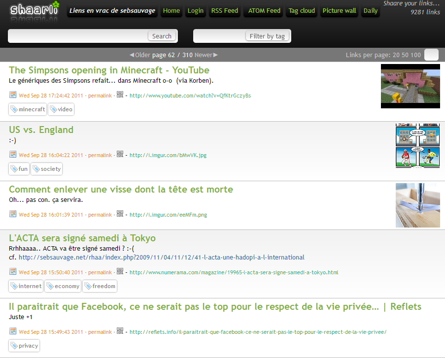Je connaissais déjà Shaarli, je suis déjà tombé sur quelques uns, mais je m’étais jamais vraiment attardé dessus.